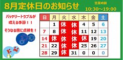 8月2日(火曜日)〜8月3日(水曜日)は定休日になります。【タイヤ館 白河】