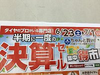 みなさんこんばんは タイヤ館白河です。 6月23日より開催しておりました 集中得市も残すところ あと3日となりました! 夏タイヤや冬タイヤをご検討のお客様は ぜひ得市期間中にご来店ください。 ご来店お待ち致しております!