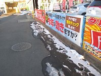 日当たりのいいところは解けてますが まだまだ日陰は凍ってるところもありますね! タイヤ無料点検で春までもうしばらくお待ち下さい。