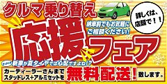 当店購入のタイヤホイールを納車前に無料配達いたします。 納車日に突然の雪や寒波に見舞われて凍結ってことになっても、 すでにスタッドレスタイヤを履いている状態で納車されたほうが楽ですよね! 近隣の販売店以外に届けて欲しいと言った場合はご相談下さい。