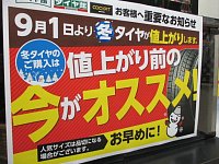 今日のオススメは、値上げ前のスタッドレスタイヤ! 9月に値上げとなるのはご存知とは思いますが 値上げ前の今がチャンスです♪ サイズによりお取り寄せとはなりますが チャンスです! 詳しくは、スタッフにお問い合わせ下さい! アルミホイールも今がお得です!!!