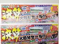 お店の脇、ロードサイドのPOP完成しました みなさ〜ん POPに見惚れて事故らないようにね なーんてね(^^) タイヤとメンテナンスフェアやってま〜す