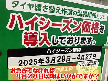 3/29〜4/27はタイヤ履き替えハイシーズン期間です。