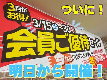 タイヤ館白河ホームページを ご覧いただきありがとうございます。 【 ~ セールのご案内 ~ 】 とってもお得にタイヤが買える、『 ご優待セール 』が ついに明日から開催されます! 会員と書いてありますが、 もちろん!ご新規様も大歓迎です! 3月15日~3月30日までの期間限定価格でご案内!...