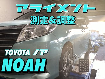 こんにちは。タイヤ館白河です。 タイヤ 本日もタイヤ館白河のご利用と、WEBをご覧いただきありがとうございます。 本日は『トヨタ ノア』 アライメント測定、調整です。 ☆タイヤの性能を発揮させる為。(性能を体感して頂きたい) ☆偏摩耗(片減り)抑制の為。(もったいない減り方を出来るだけなくした...