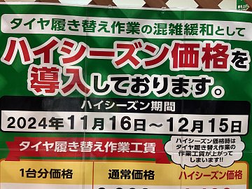 【 タイヤ館 白河 】タイヤ交換・ハイシーズン価格