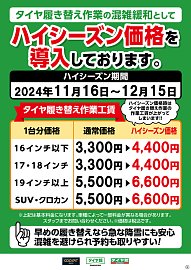 いつもタイヤ館白河のWEBをご覧いただきまして ありがとうございます。 混雑緩和の為、ハイシーズン価格を導入致します。 繫忙期の為、電話が繋がりにくくなっております。 大変ご迷惑をお掛けしますが、ご理解の程宜しくお願い致します。 タイヤの履き替えはタイヤ館白河へお任せください。 ご予約...