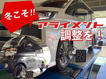 タイヤ点検してますか? 「春にタイヤ交換したっきりで・・・」 そのタイヤ大丈夫ですか? 安全・安心の為に交換するスタッドレスタイヤの性能を 十分発揮させる為にも【 アライメント調整 】お勧めします! 場合によっては、改善されない場合もありますので 調整前には車の状態確認させて頂いてお...