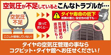 お出掛け前には空気圧点検を。タイヤ館白河