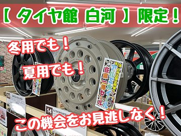 タイヤ館白河ホームページをご覧いただき ありがとうございます。 当店『タイヤ』館といいますが、 ホイールも得意です!! アウトレットホイールもまだあります★ サイズが合えばラッキーの早い者勝ちです! 冬タイヤとセットでアルミホイールを ご検討中の方、当店へぜひ一度ご相談下さい。 皆様の...