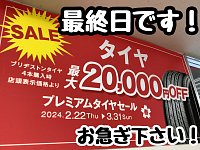 プレミアムタイヤセール本日最終日です。