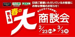 2月23日~3月3日まで開催しておりました 第1弾 春の大商談会 購入・お見積りに関わらず沢山のお客様にご来店して頂きました! 期間中のご来店、誠にありがとうございました。 交換に向け、タイヤの準備をしてお待ちしております。 第1弾でのご来店が叶わなかったお客様 第2弾があり〼。