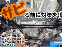 ボディーコーティングはしていても、 車の下は…コーティングしてますか? 車を長く経済的にお使いいただくお手伝いが 防錆コーティング! 普段目につかない部品がサビで交換って事が少しでも 防げるようにオススメです。 ※サビないわけではありません。サビとサビの進行を抑制させるコーティングで...