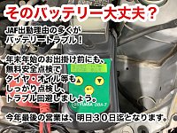 年内の営業は明日30日で終了です。 大晦日から来年1月4日迄お休みとなります。 年末年始お出掛け前最後の点検を致しませんか? 出掛けた先でのトラブル回避の為にも 無料安全点検しておきましょう。