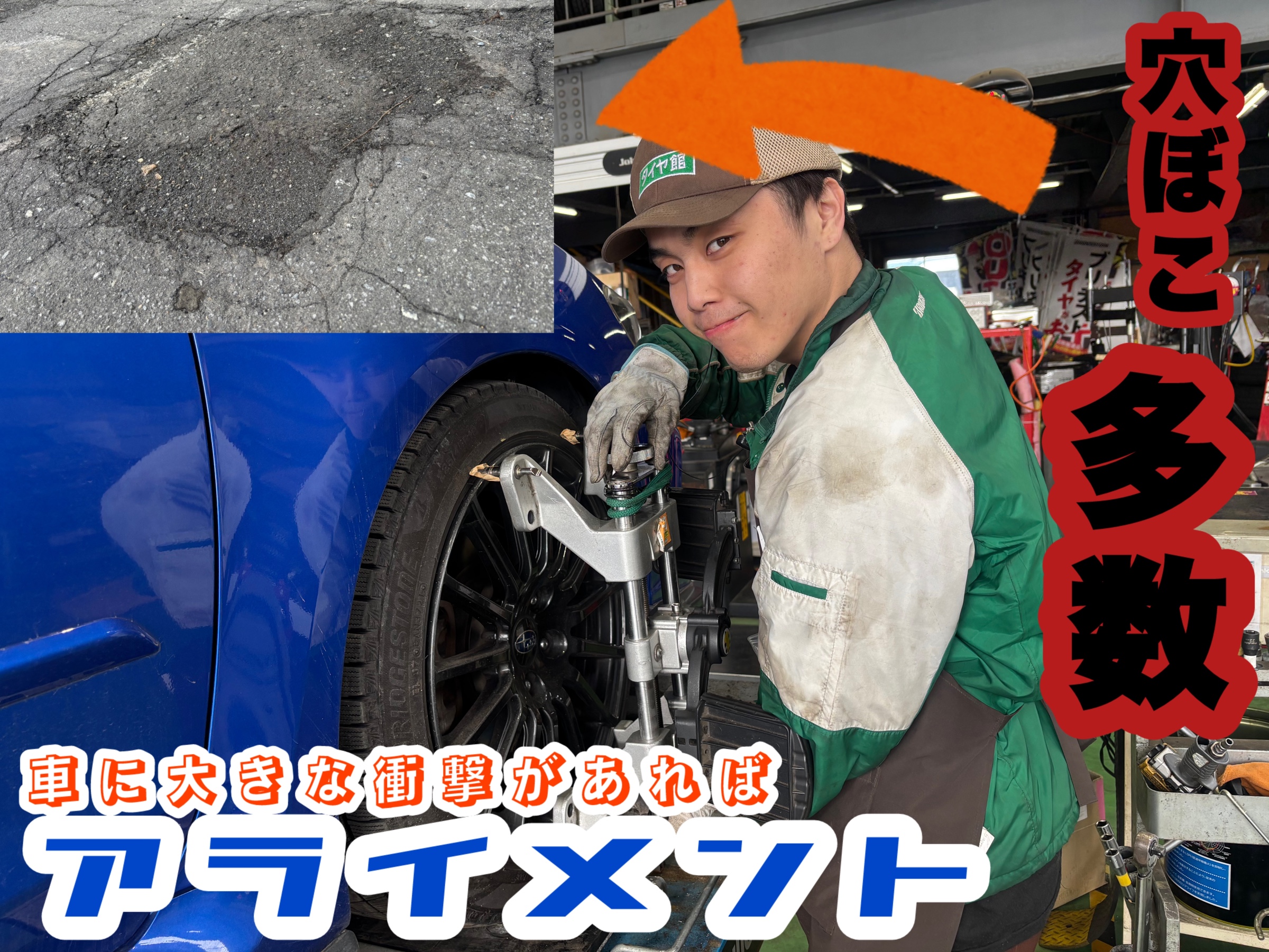道路の段差で大きな衝撃があればアライメントがおススメ