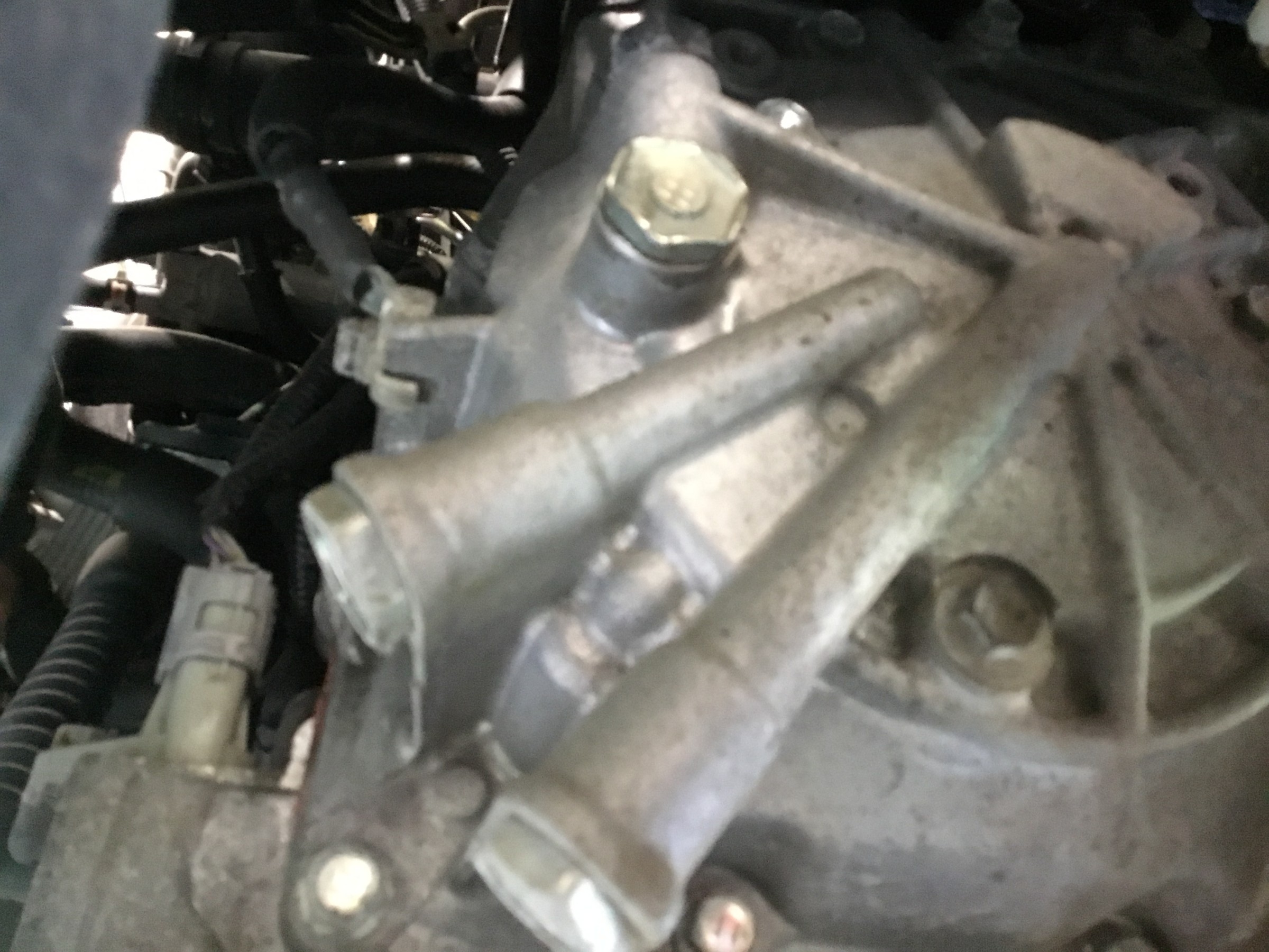 こちらの車両ですが、エンジンルーム内にCVTFのゲージが無い為、CVT本体の下についているドレンボルトからフルードを抜きCVT本体の横についている入れ口から入れます。
