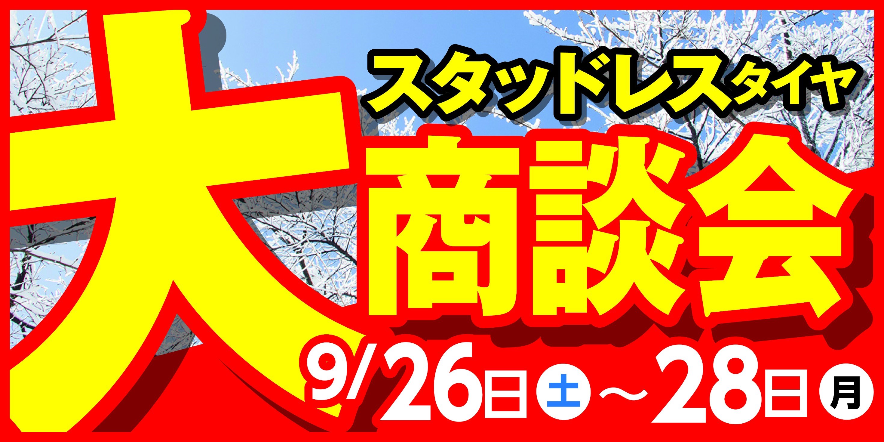 いつも見てくださっている方でしたらご存知かもしれませんが、今月末9/26~28まで年に1度の大イベント「スタッドレスタイヤ大商談会」があります!!