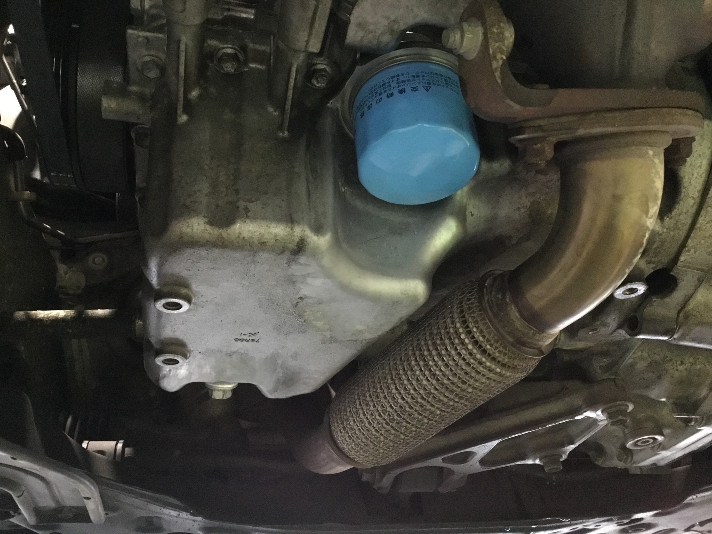 お車の下側からオイルを抜き、ボンネットから入れて完了です!!