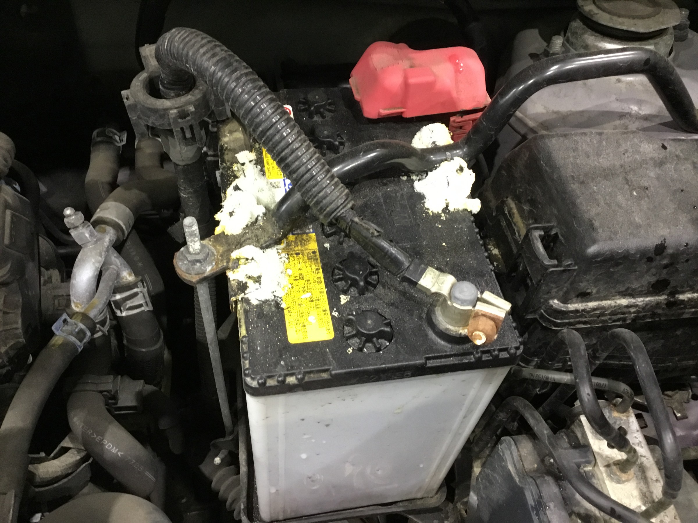 バッテリーを見てみるとサルフェーションがびっしり!!