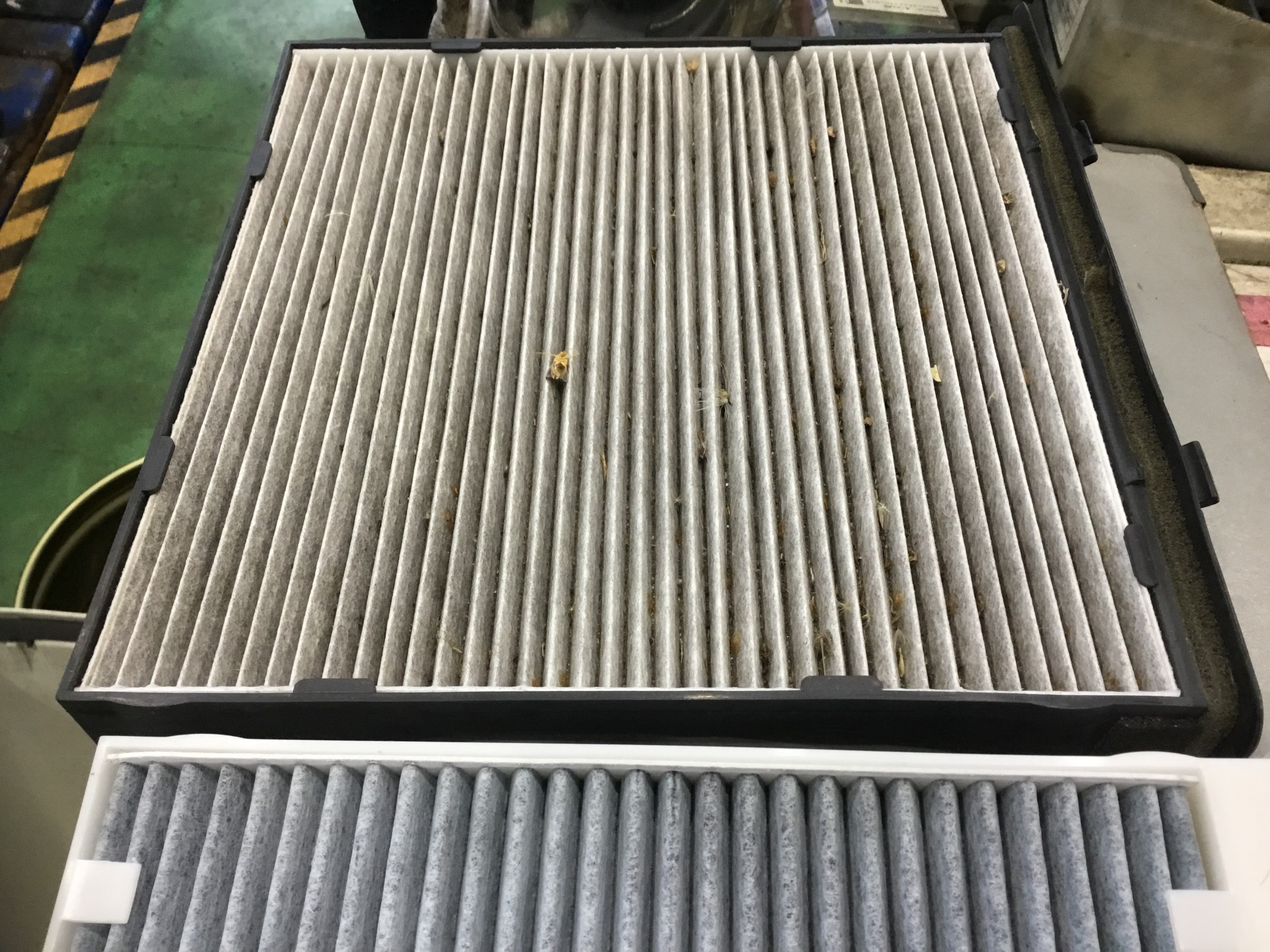 車検で入庫の時に、エアフィルターを交換させて頂いたのですが、エアコンフィルターも点検したところ、、、