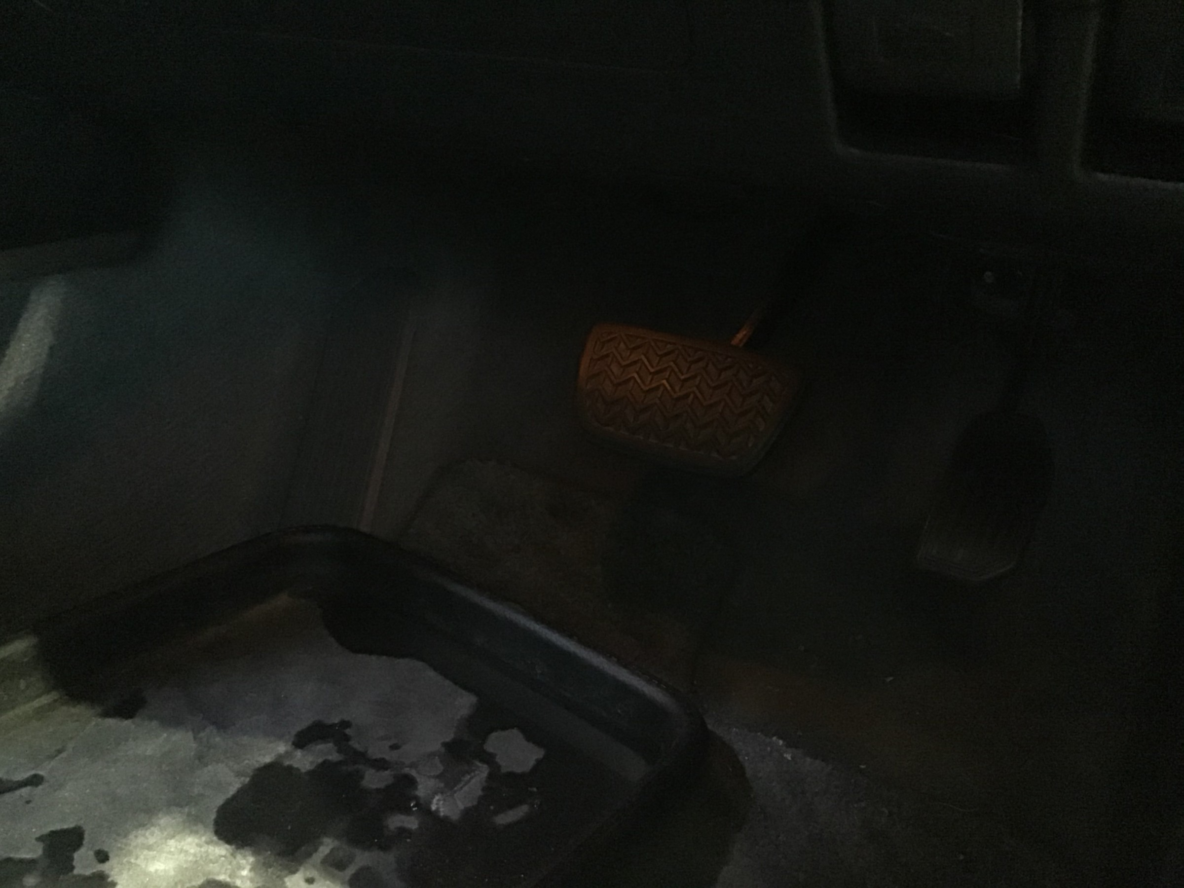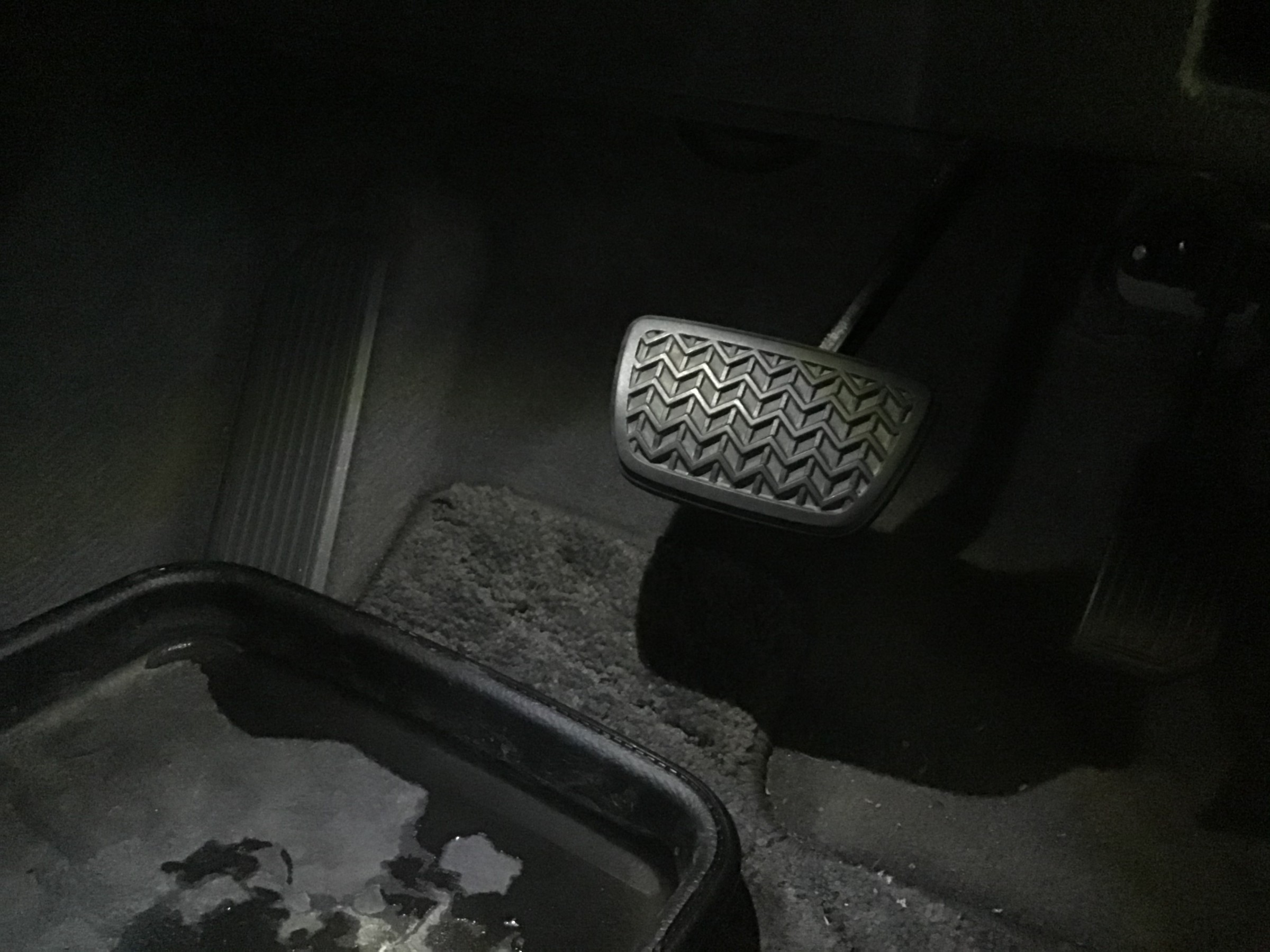 見えます?!ブレーキペダルがかすかに照らされるくらい・・・