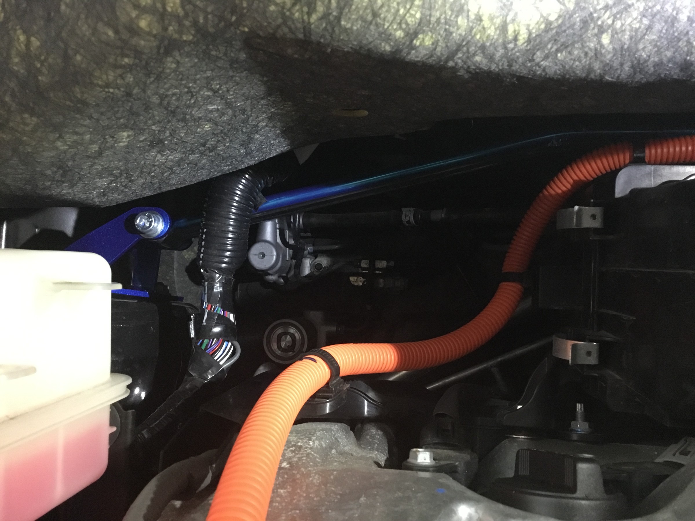少し見えずらいのですが、奥にある光っているパイプ状のものが「ストラットバー」です。