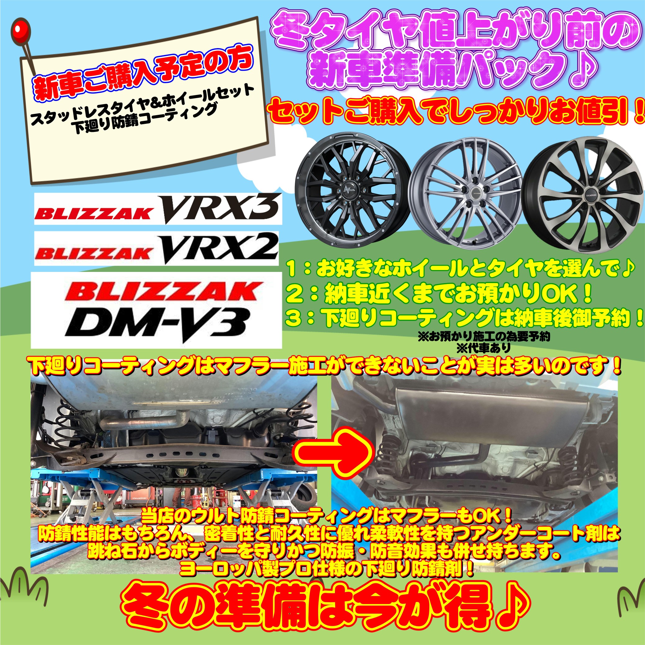 新車ご購入予定の方必見!スタッドレスタイヤ&ホイールセット&下廻り防錆コーティングセットがお得♪