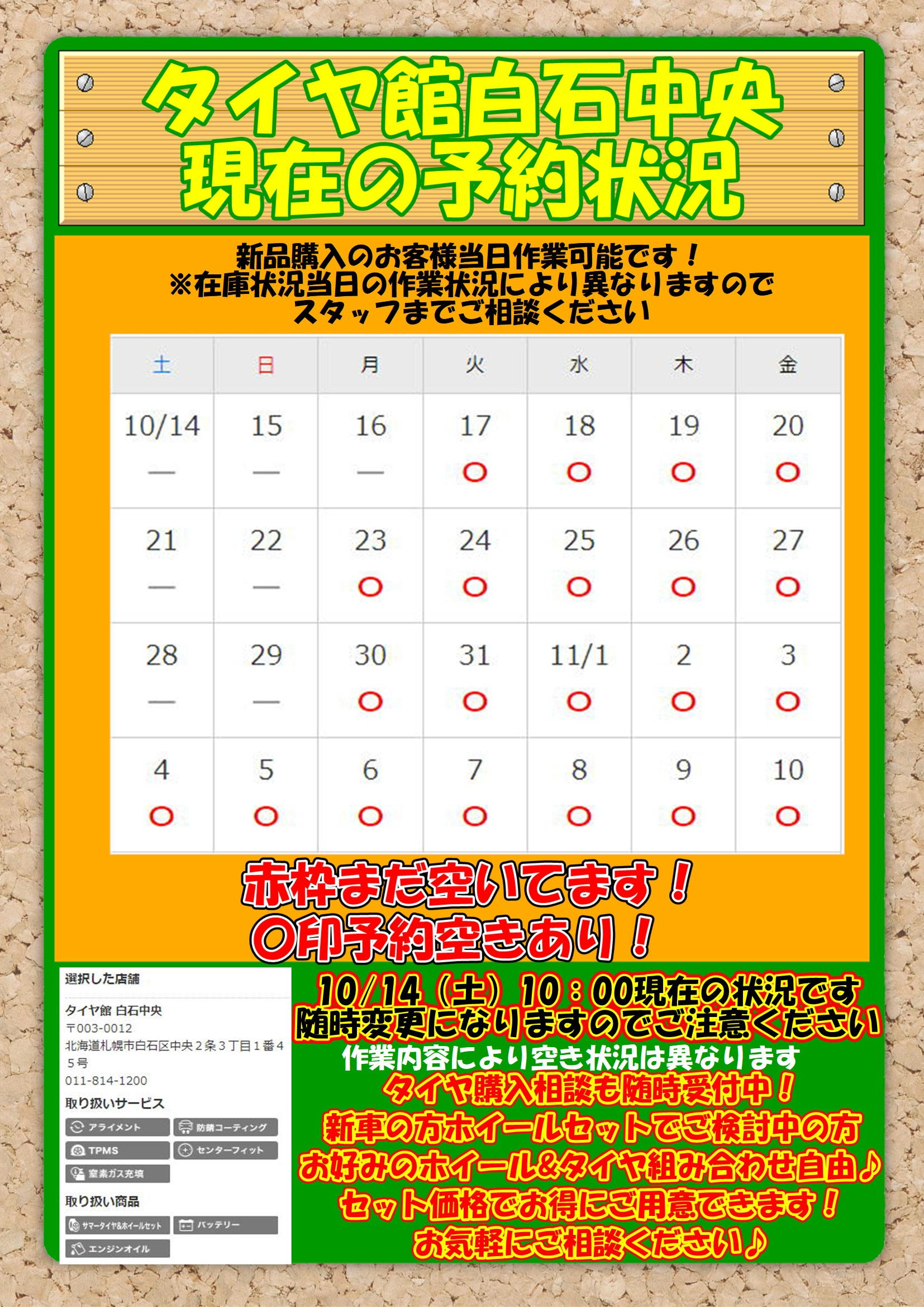 尚、冒頭でご説明したとおりタイヤ交換の予約も埋まってきています。