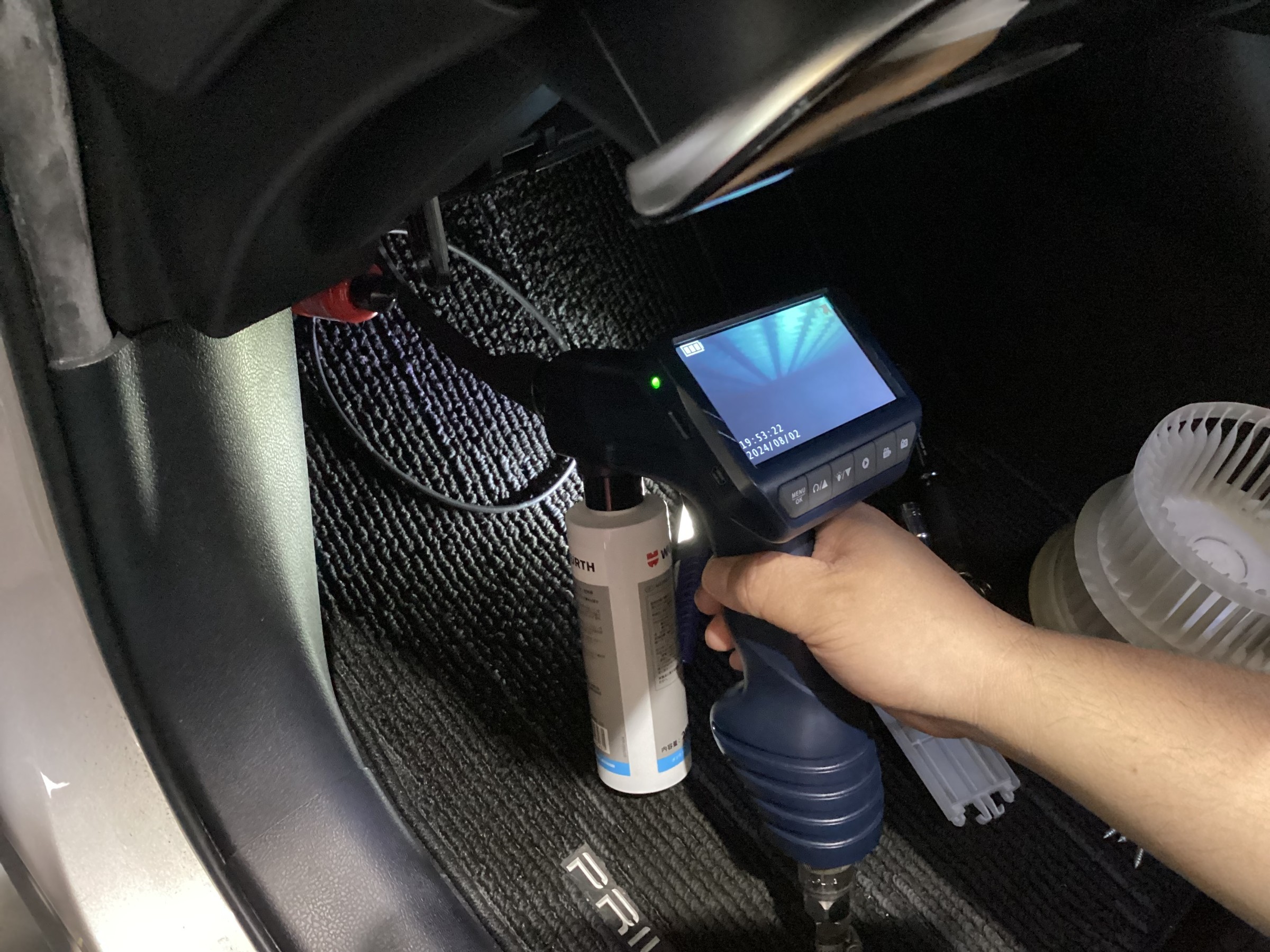 あと先端のノズルをエバポレーターまで伸ばしカメラを見ながら洗浄剤を噴射し