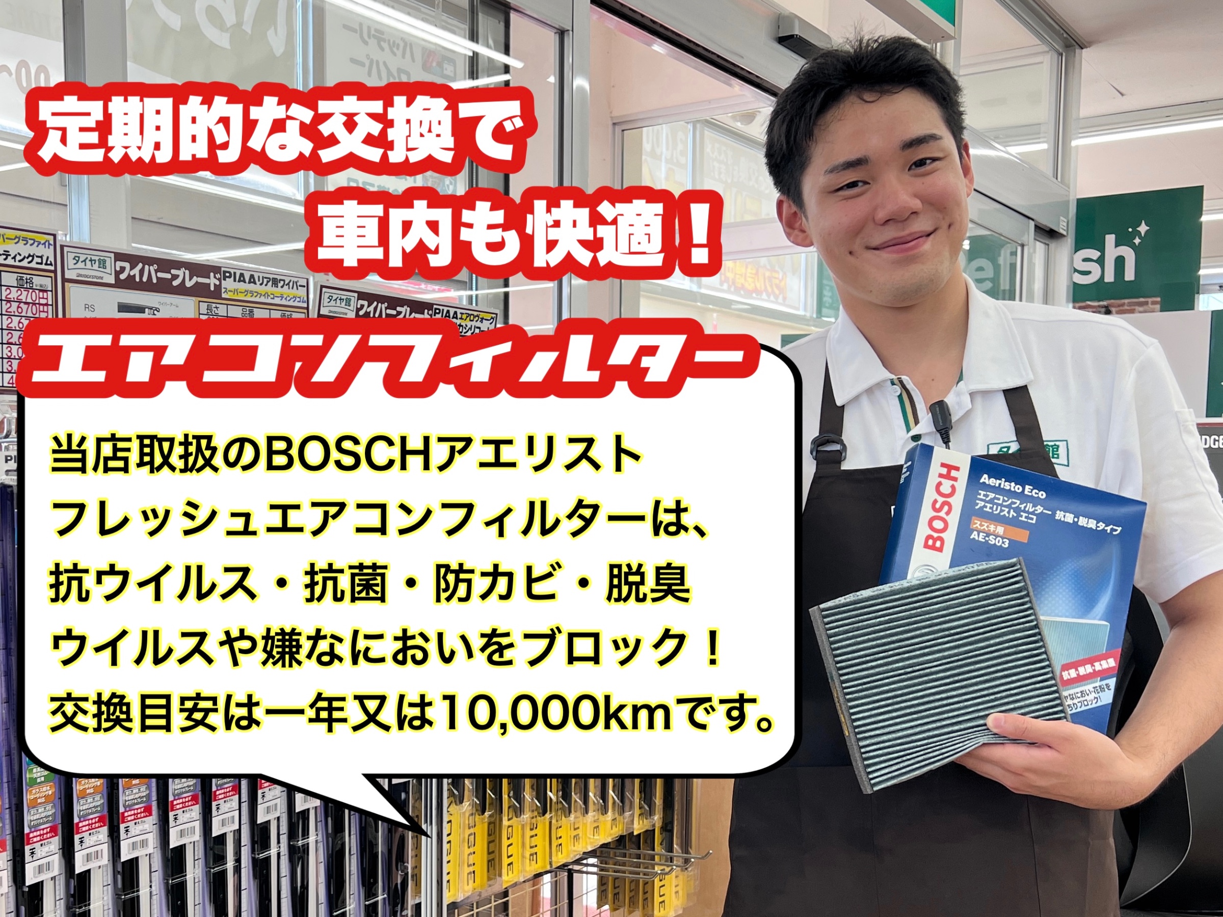 オススメ商品はBOSCHアエリストフレッシュエアコンフィルター!!