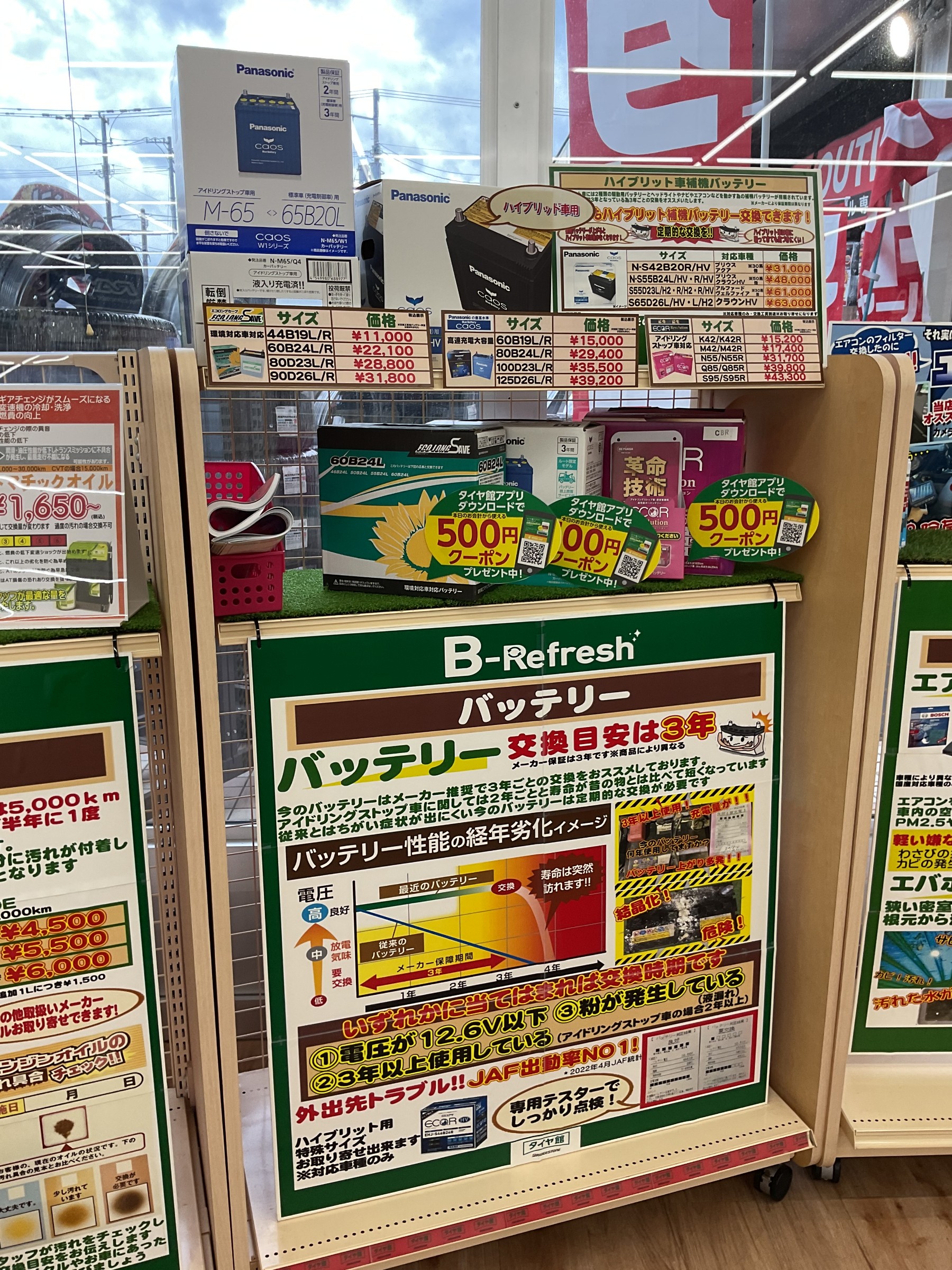 電圧の低下(12.6V以下)や粉が出ている等、交換推奨タイミングは色々ありますが