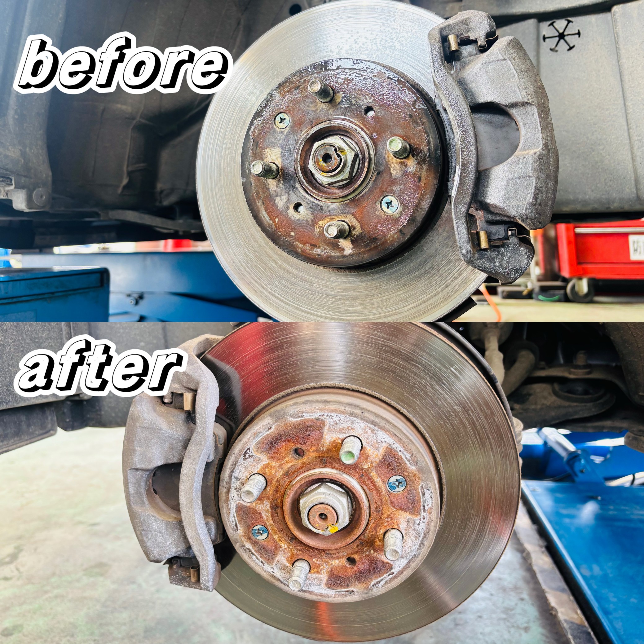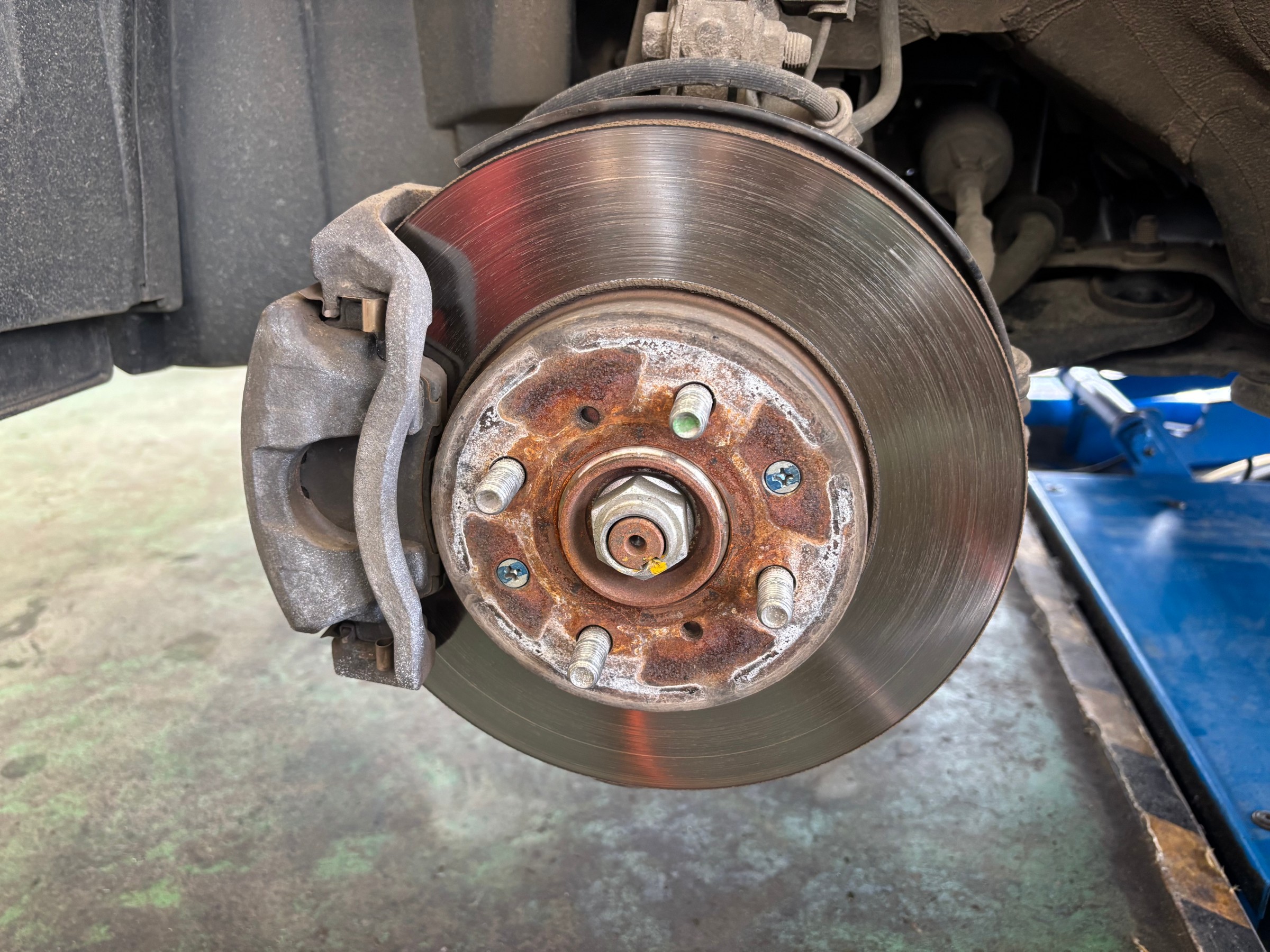 ここが錆びてくるとナットの緩みや、脱輪に繋がるので