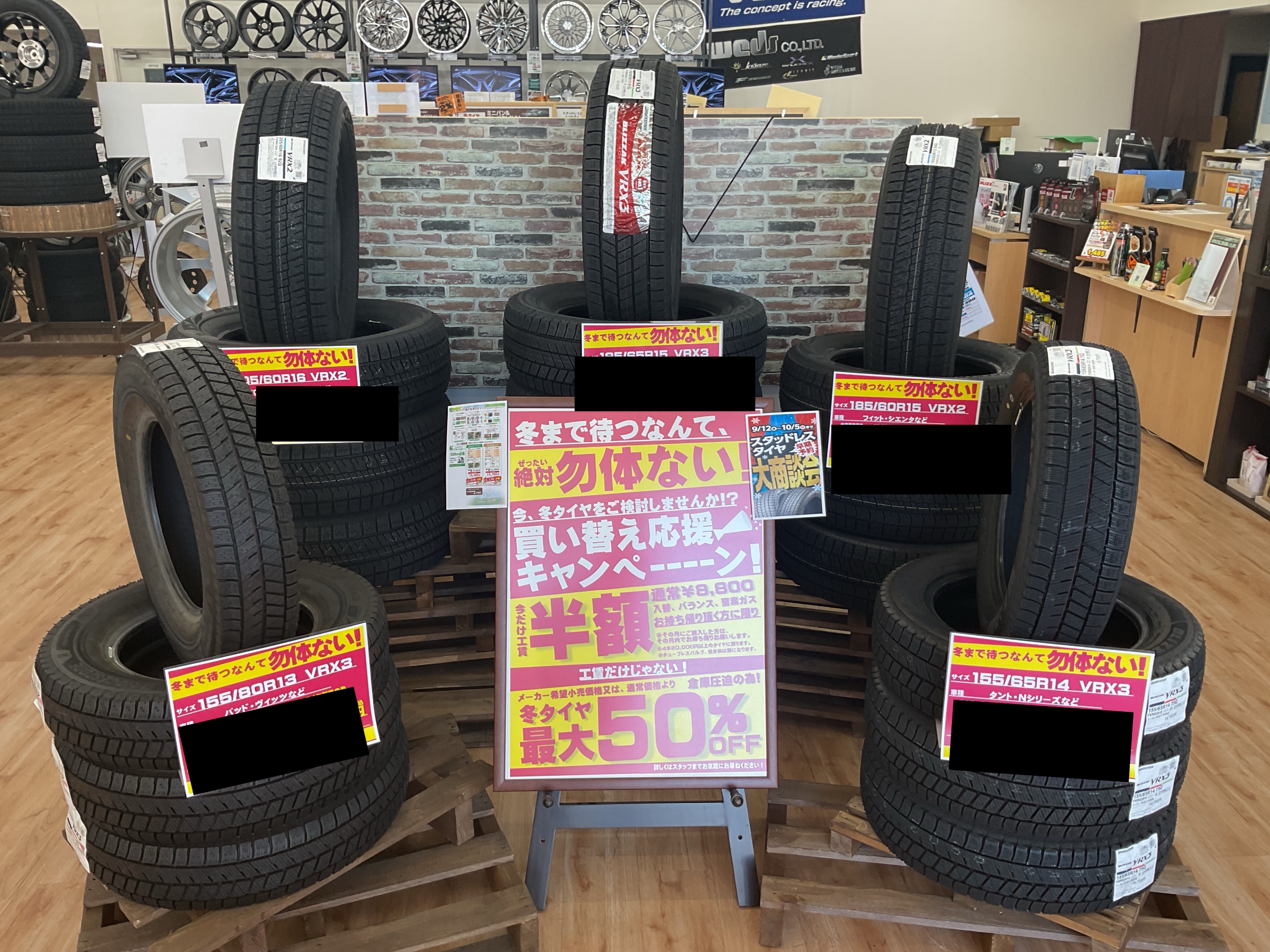 ただいまタイヤ館ではスタッドレスタイヤ大商談会を開催中です。