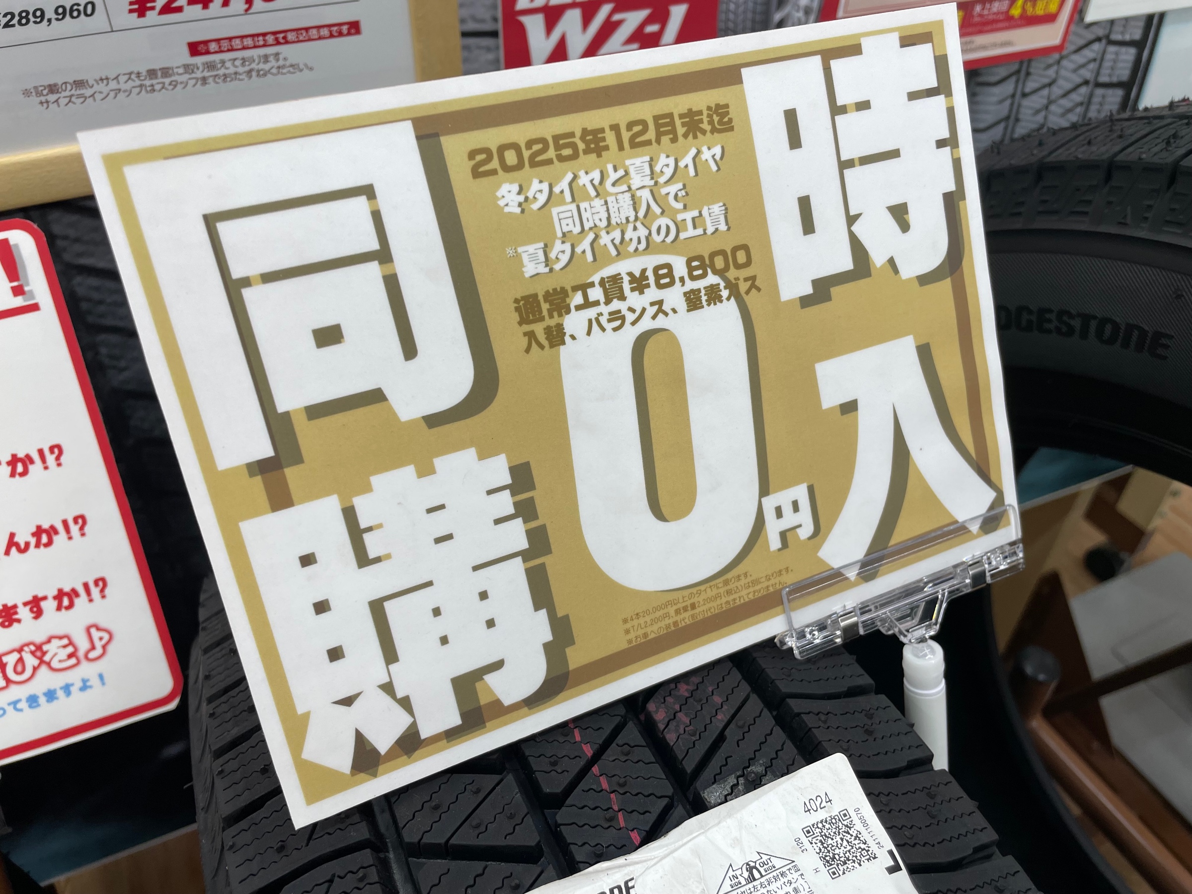 また冬タイヤを購入された方は夏タイヤの工賃0円にてご提供中です!