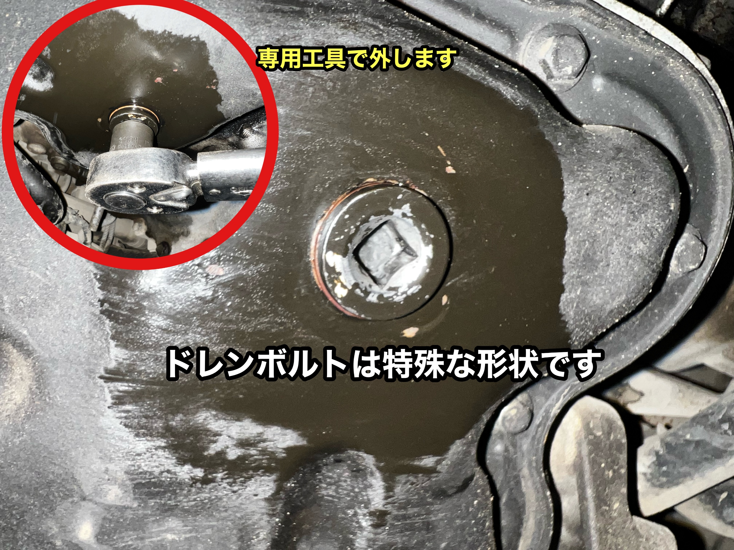 ドレンボルトも特殊な形状ですので専用の工具で外します