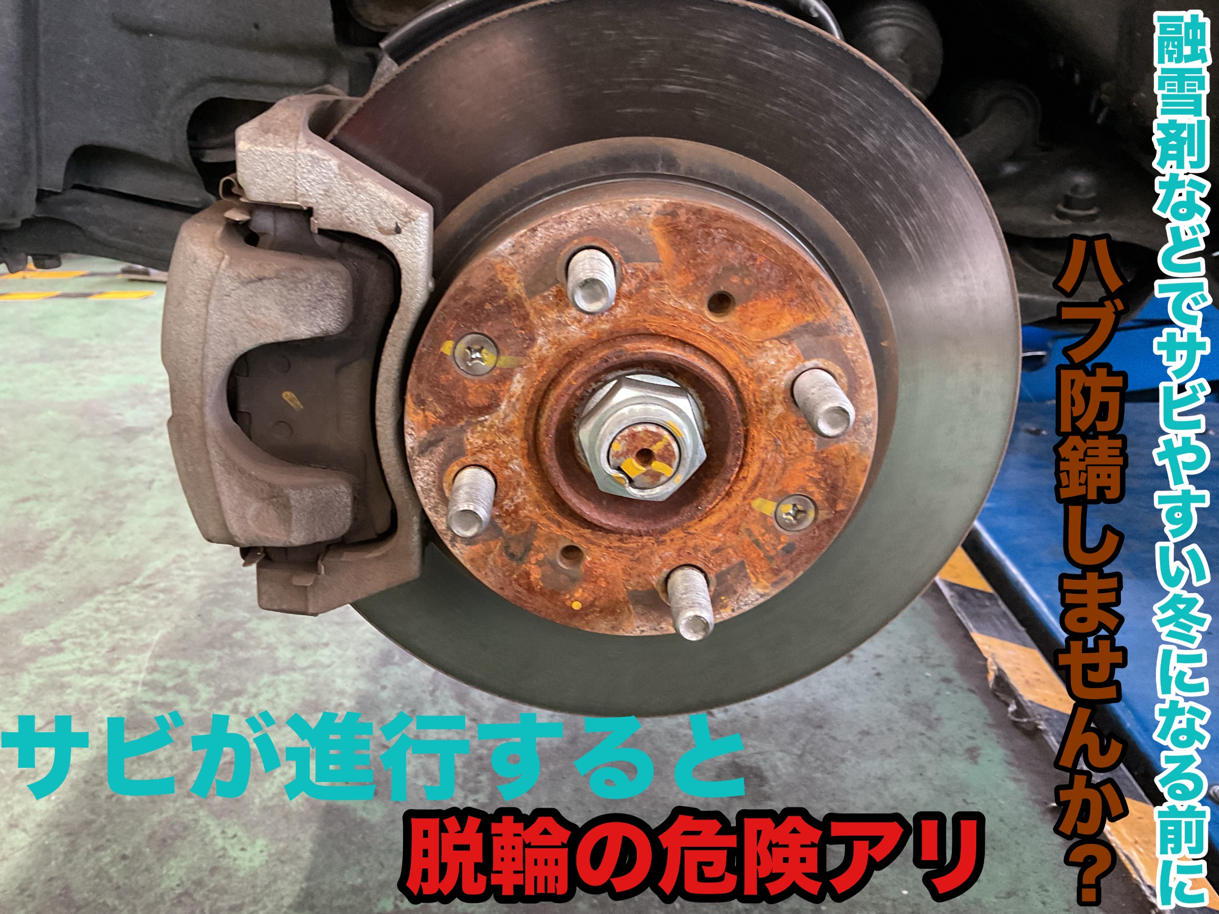 今回はタイヤの取り付ける部分のハブ防錆についてお話しします。