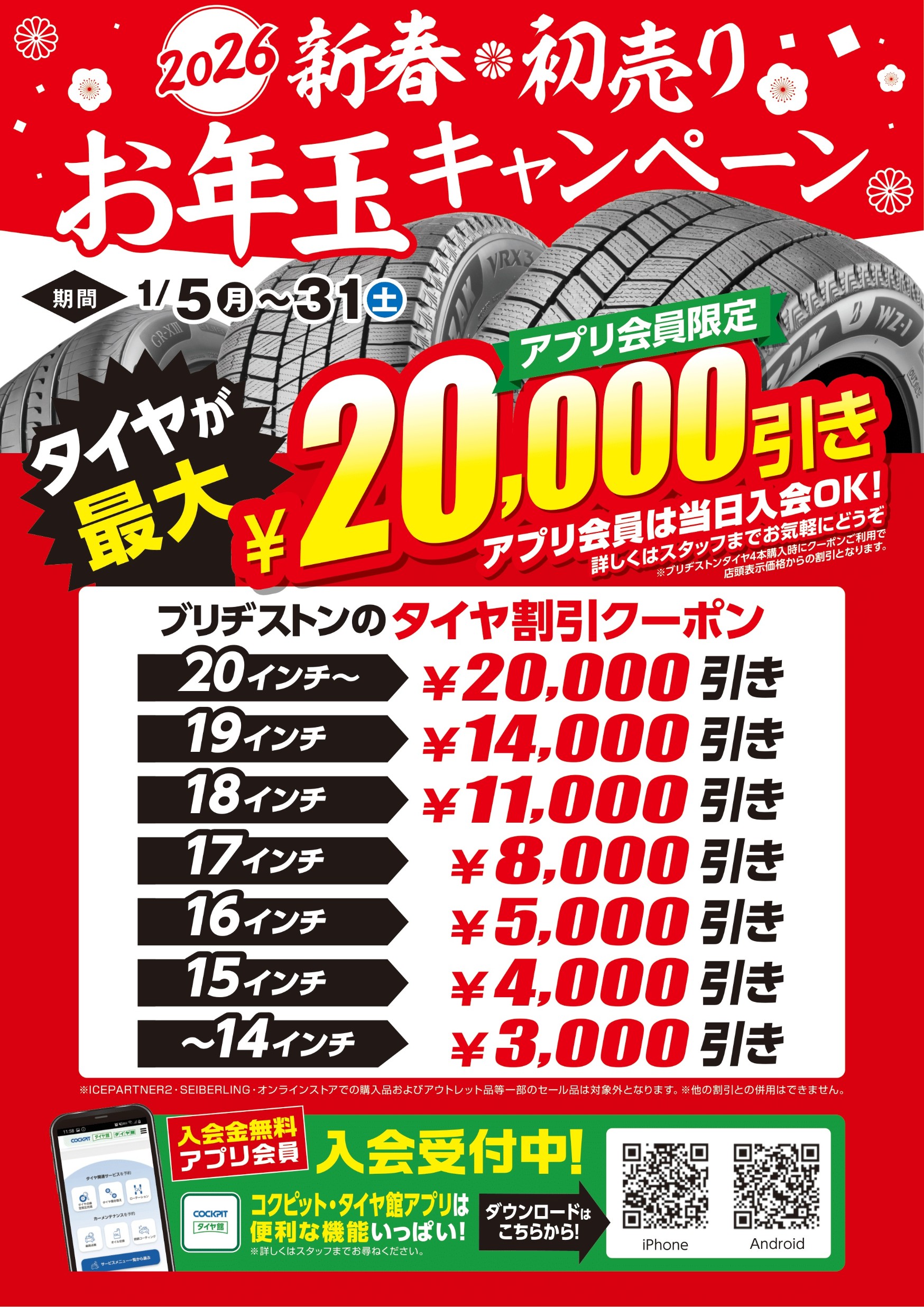 アプリ登録でタイヤ割引クーポンプレゼント!「2026新春初売り」開催決定!!