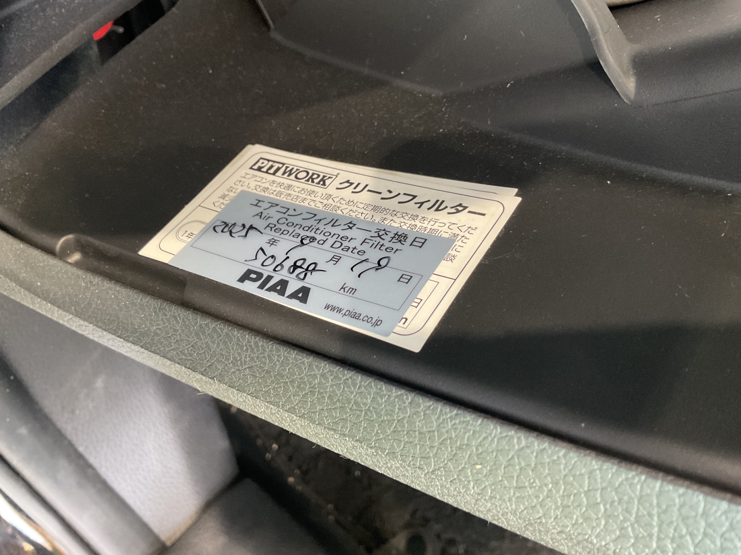 交換した事があるならグローブボックスにシールが貼っているので確認出来ます。
