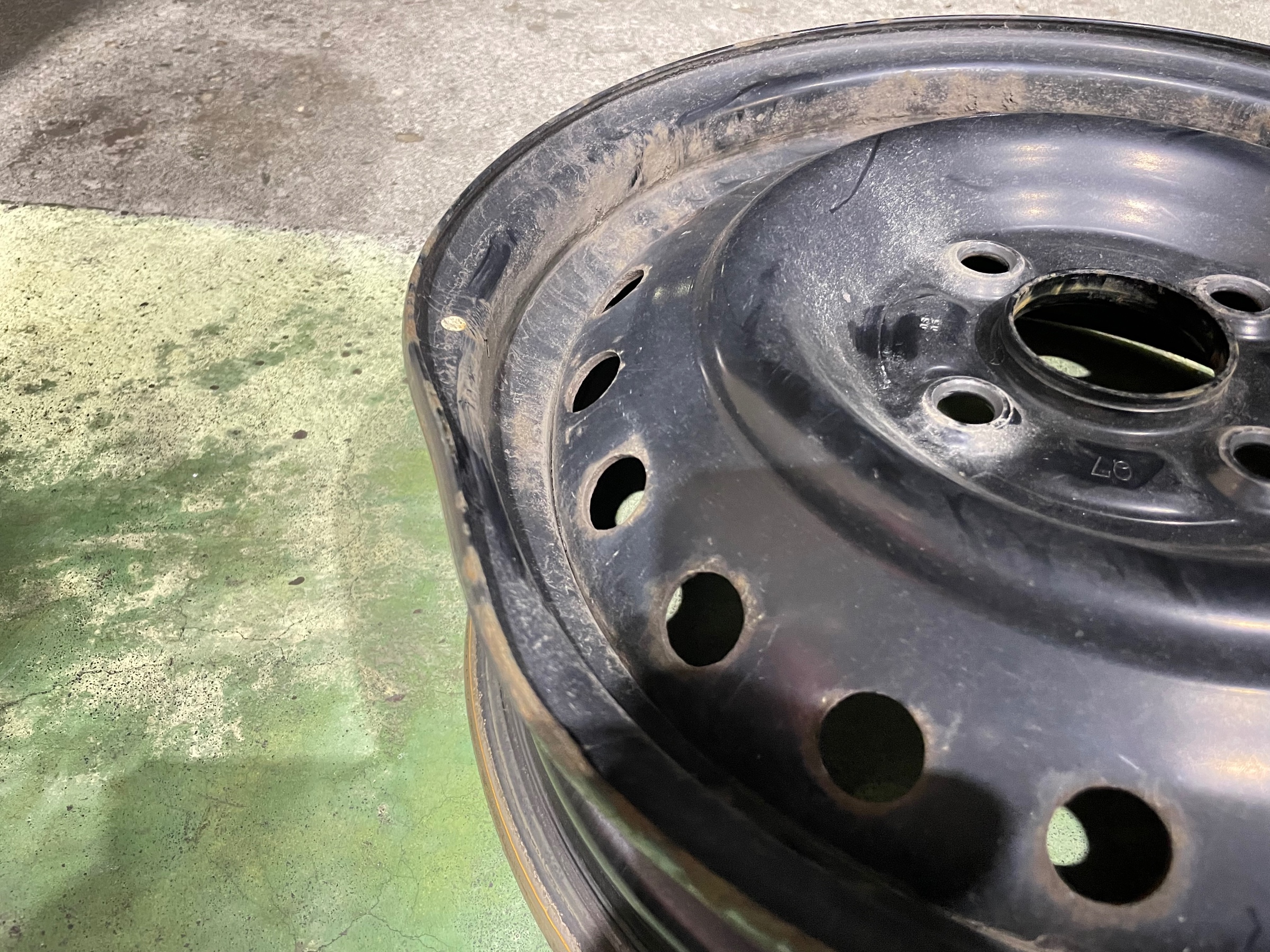 スチールホイールでフチが歪んでしまっている状況でした