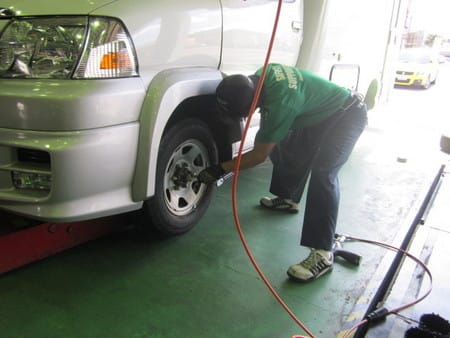 一枚目はキャンピングカーのタイヤ交換の様子です。