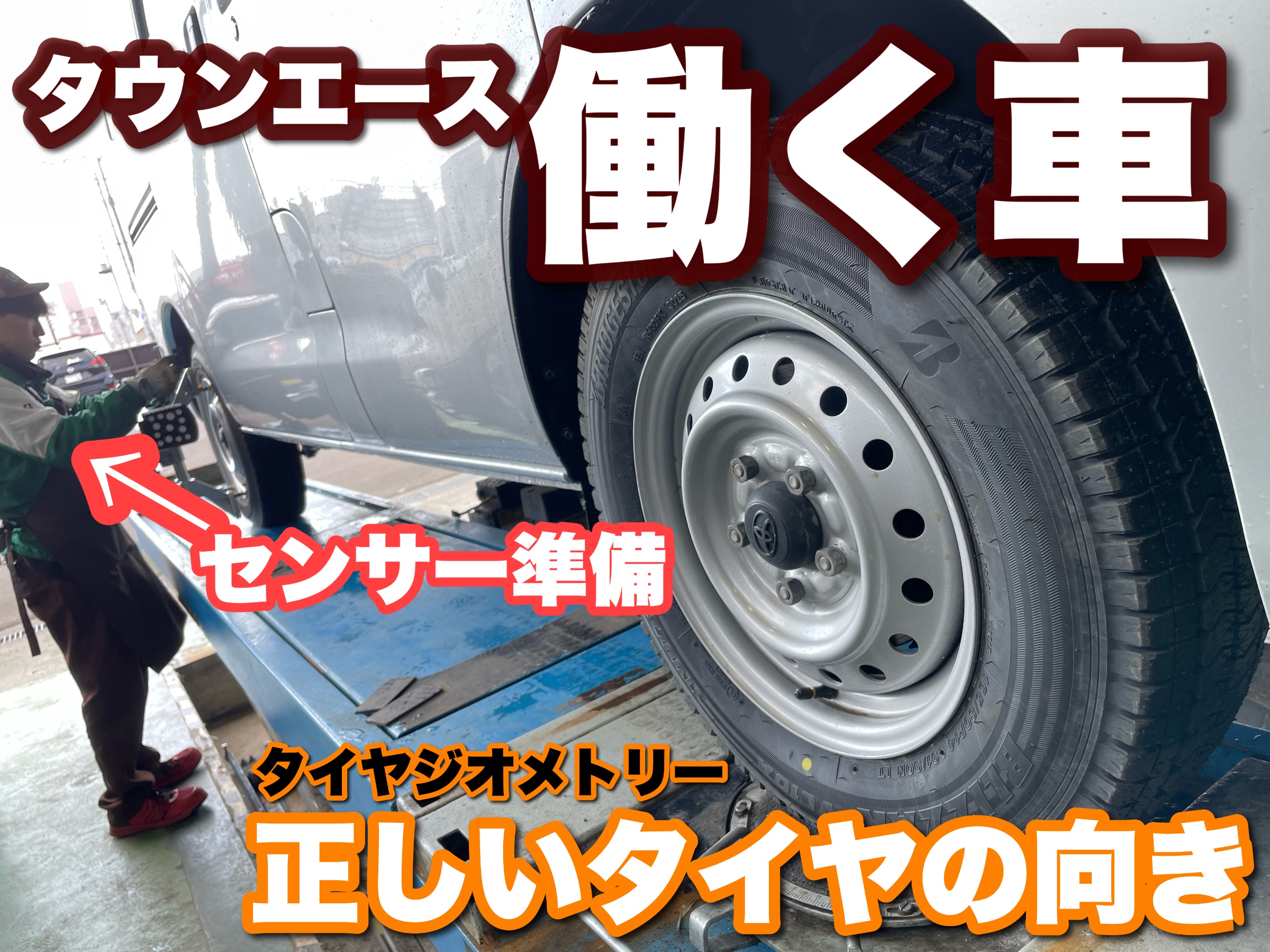 本日はタウンエース のアライメント作業を 実施させて頂きました! タウンエースもハイエース、 サクシード、エブリイに並ぶ働く車となっており 距離を多く走行されたり、 荷物を多く積み込んだりさせる使い方が多いお車かと思います! こちらですが足回りの部品をディーラ様で交換されたようで 今...