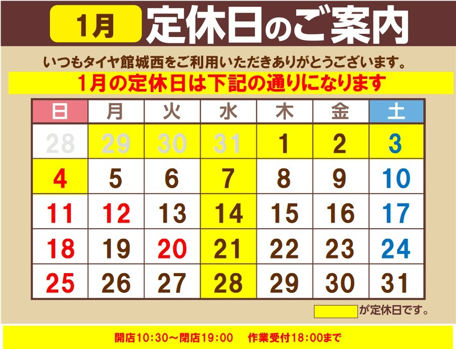 【2026年:タイヤ館城西イベントスケジュール】