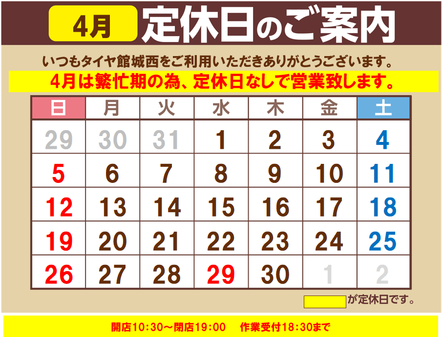 タイヤ館城西をご利用頂き誠にありがとうございます。
