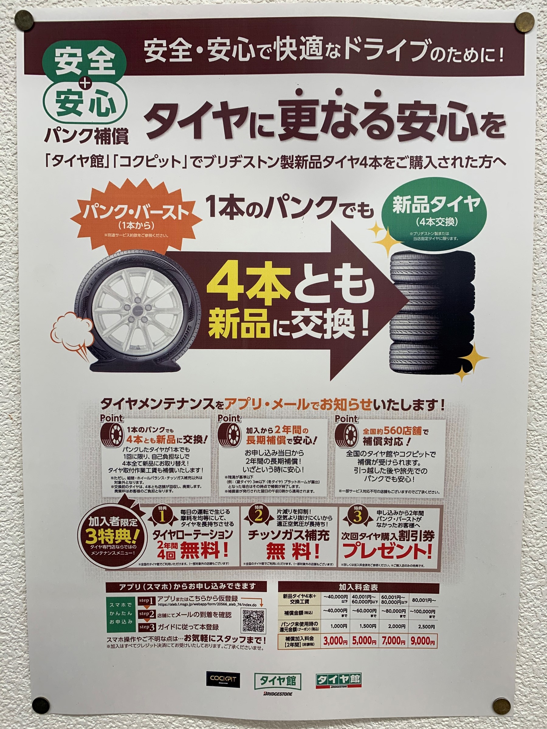 タイヤご購入の際は安心の為に是非補償もご検討ください!