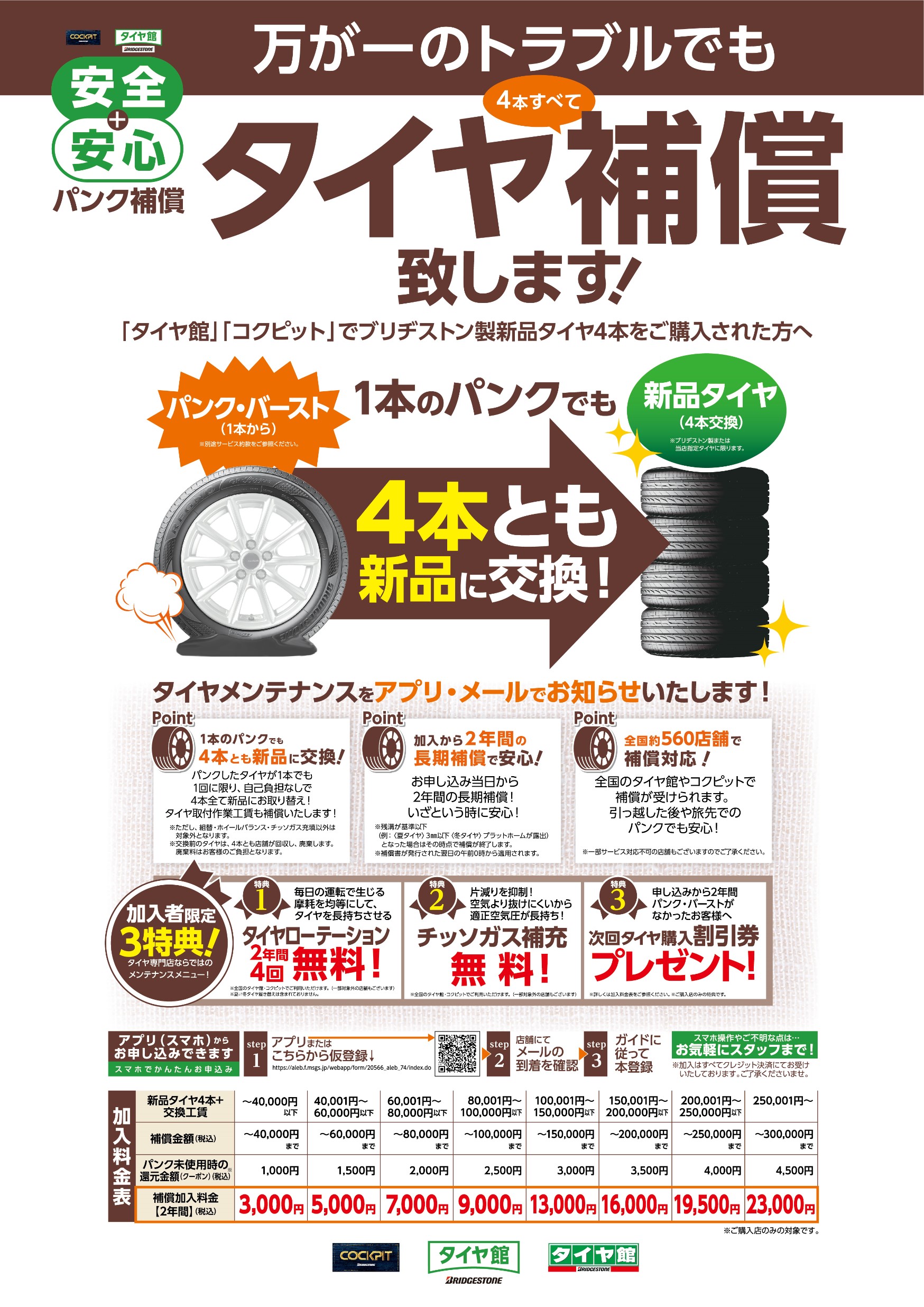 タイヤ補償は購入から8日以内の加入が必要です!!