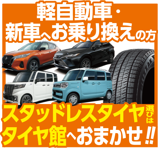 軽自動車・新車へお乗り換えの方へ、スタッドレスタイヤ選びはタイヤ館へお任せください!