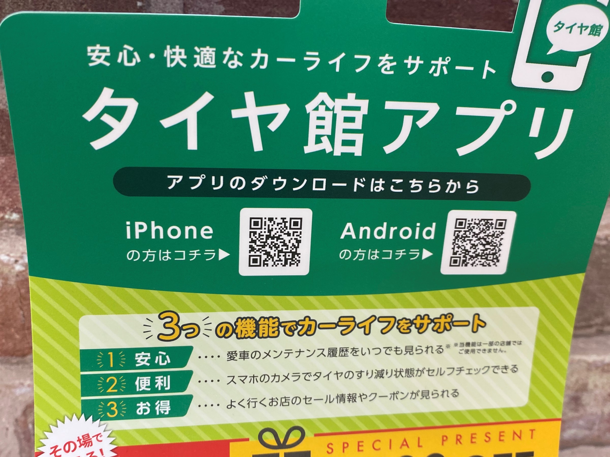 こちらご入会の際はタイヤ館のアプリ登録が必要になります。