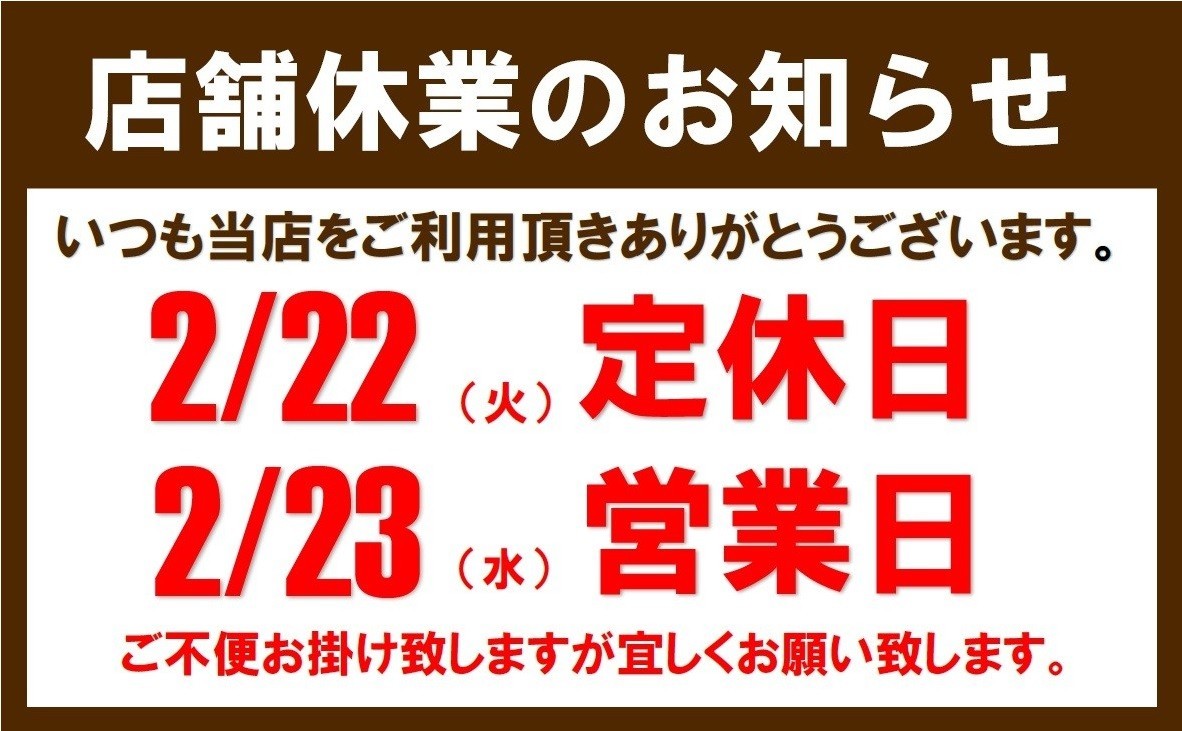 2/22(火)が定休日となっております。