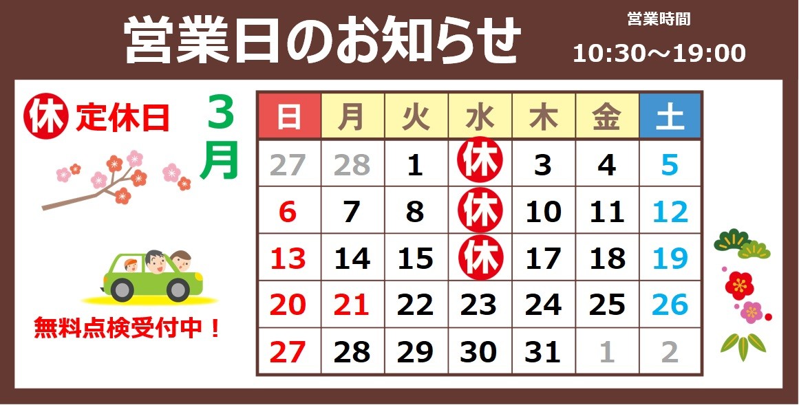 3月の営業日のご案内