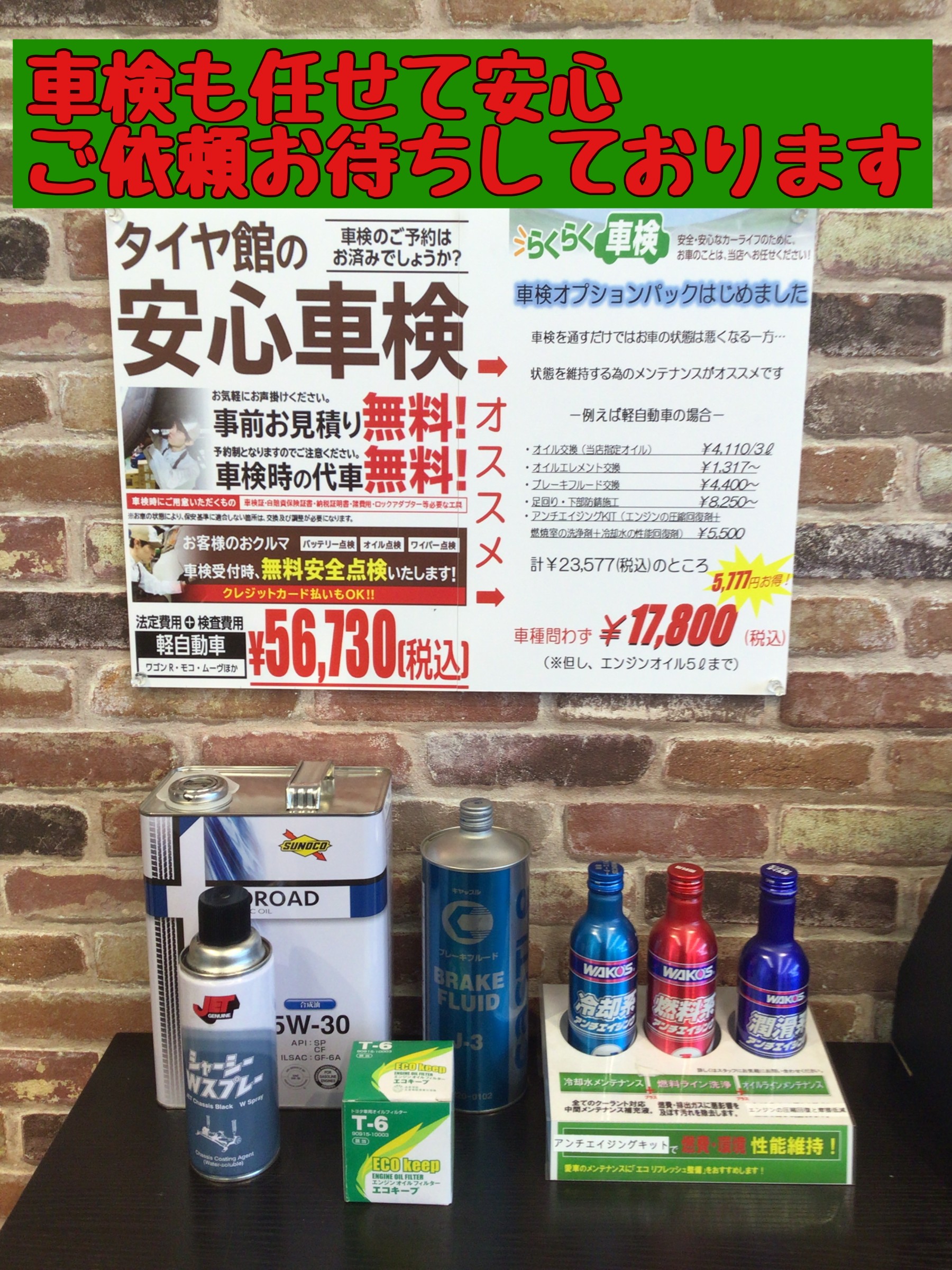 当店で厳選したパックサービスですので車検の際は是非ご一緒にご検討ください!